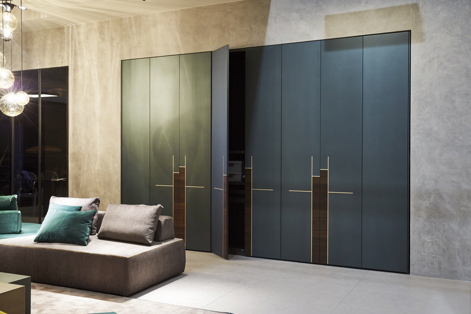 Deco closet matches together the solid wood finishings with the brand new metal lacquering with brass inserts. A new design to reach new style targets.
