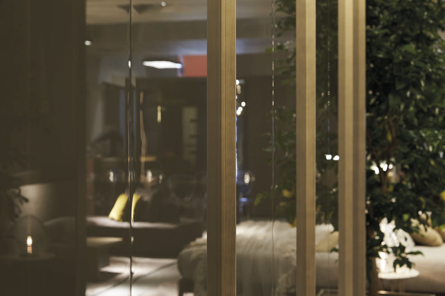 Louvre matches elegance and simplicity because of the metal bronze frame and led lights.